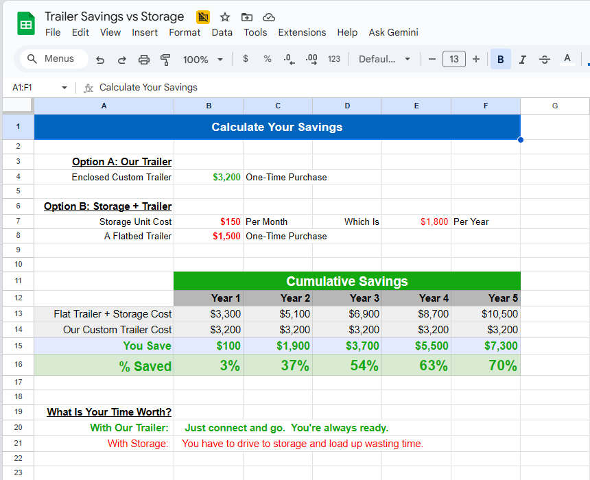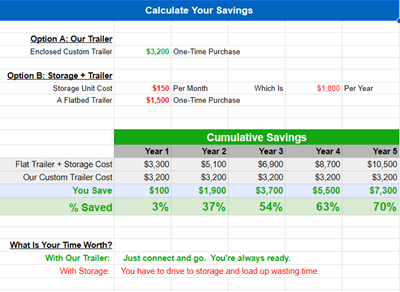 It's now time for someone else to use it hauling camping equipment, ATVs, event equipment, or just saving money on storage.